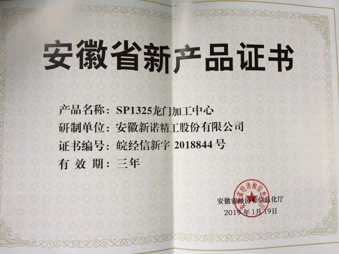 產(chǎn)品證書-SP1325龍門加工中心