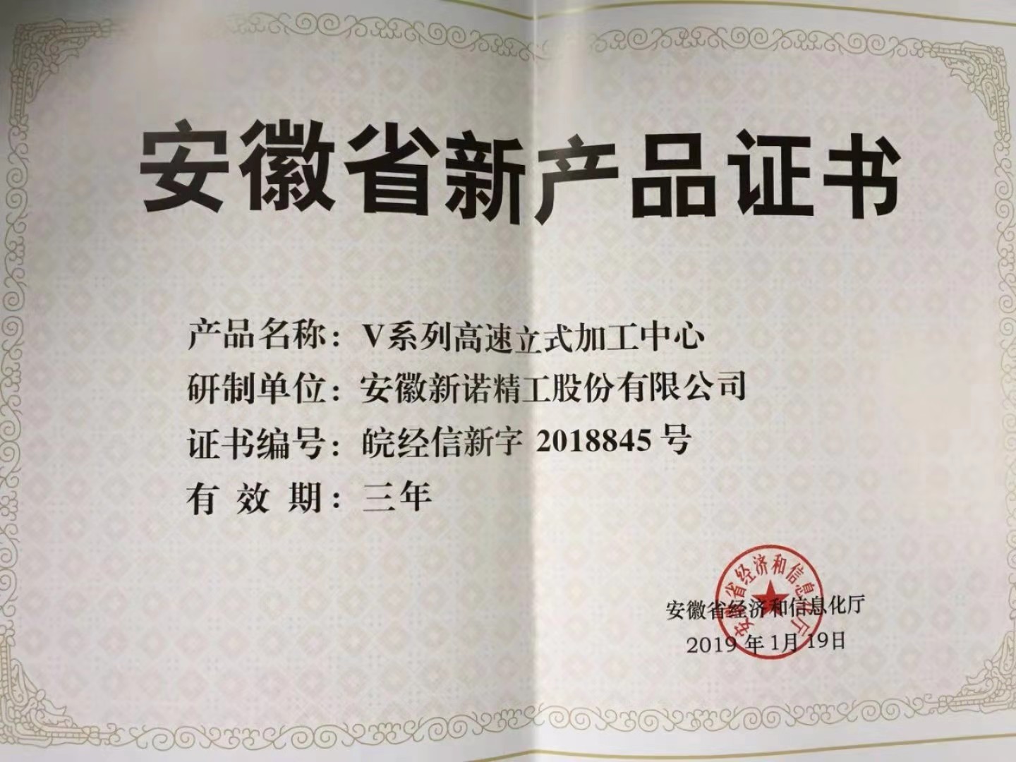 產(chǎn)品證書-V系列高速立式加工中心