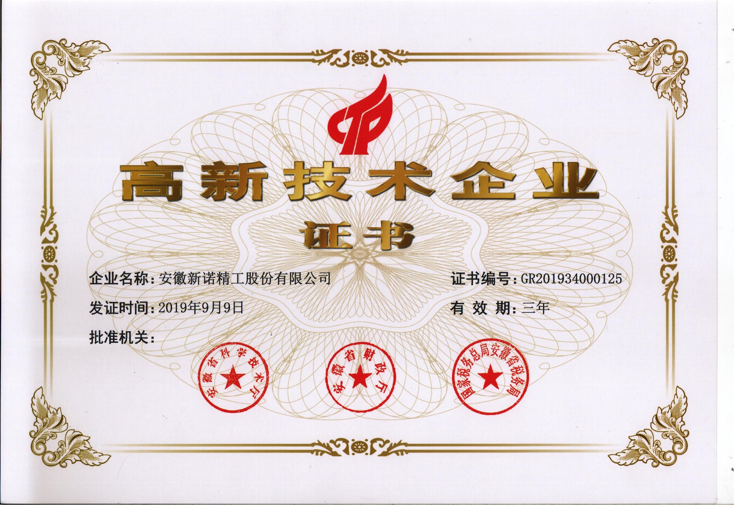 高新技術(shù)企業(yè)證書